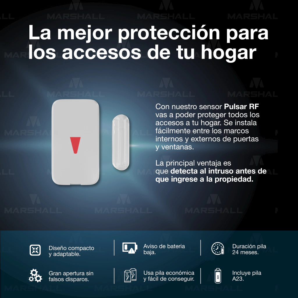 1- Sensor magnético inalámbrico para puertas y ventanas Pulsar RF (pila incluida).